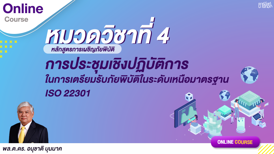 หลักสูตรการเผชิญภัยพิบัติ หมวดวิชาที่ 4 การประชุมเชิงปฏิบัติการในการเตรียมรับภัยพิบัติในระดับเหนือมาตรฐาน ISO 22301