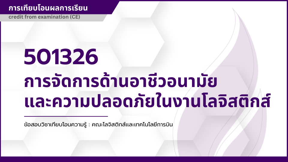 501326 การจัดการด้านอาชีวอนามัยและความปลอดภัยในงานโลจิสติกส์